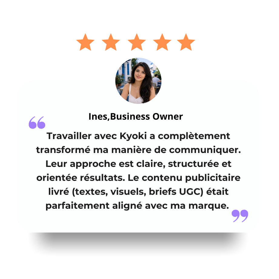 Turn ideas into high-performing content. KYOKI crafts UGC briefs with hooks, angles, key messages, and scene guidelines so creators deliver videos ready for Meta Ads, social media, and scaling—fast, clear, and conversion-focused.
